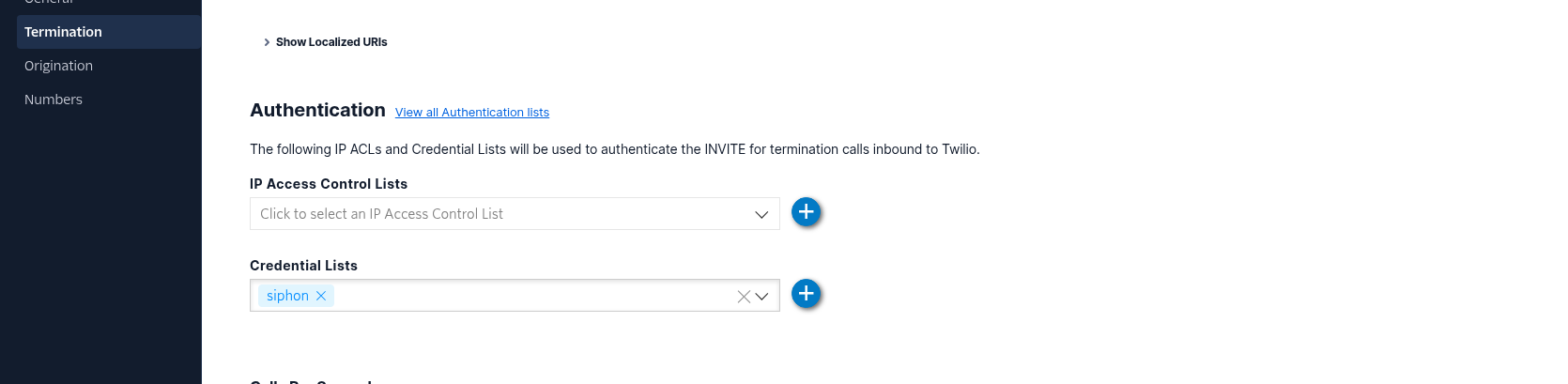 - Ensure the Twilio Credential List is attached to the trunk under Termination Authentication