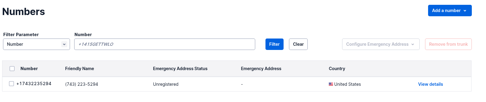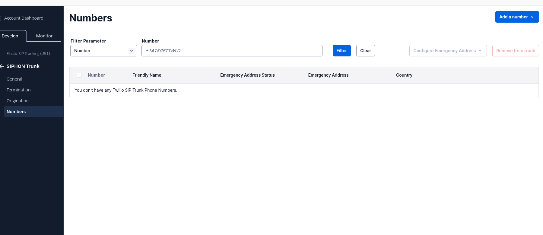 - Elastic SIP Trunking -> Manage -> Trunks -> select your trunk -> Numbers